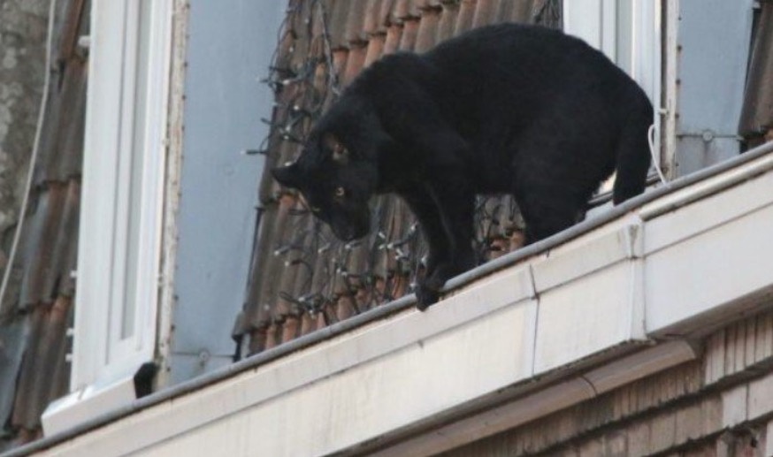 El felino, con un comportamiento propio de una mascota de casa, fue visto la noche del miércoles por los vecinos paseando por el borde de un techo en el piso tres del edificio, y lo reportaron a los bomberos y grupos protectores de animales.