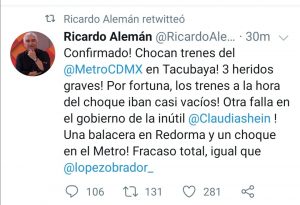 Después de este accidente el periodista Ricardo Alemán dio su opinión del por qué había sucedido eso, sin embargo los usuarios de estas plataformas se enojaron y lo empezaron a atacar.
