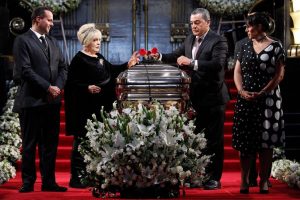 Luego de un breve mensaje de ambos, el cortejo fúnebre se trasladó hacia el Palacio de Bellas Artes, donde se tiene preparada una celebración de despedida del icónico cantante.