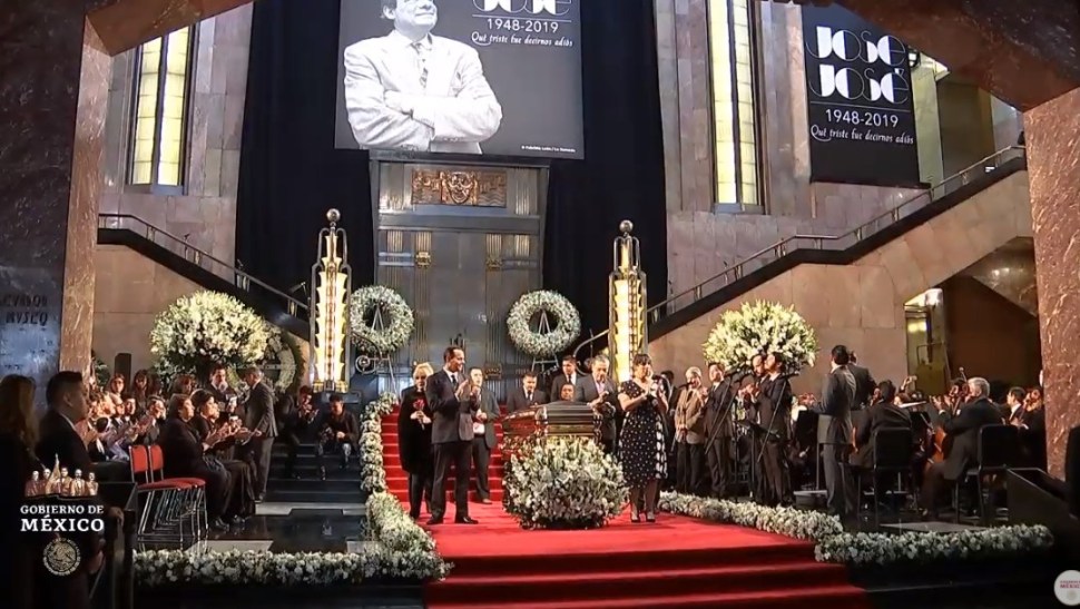 Luego de un breve mensaje de ambos, el cortejo fúnebre se trasladó hacia el Palacio de Bellas Artes, donde se tiene preparada una celebración de despedida del icónico cantante.