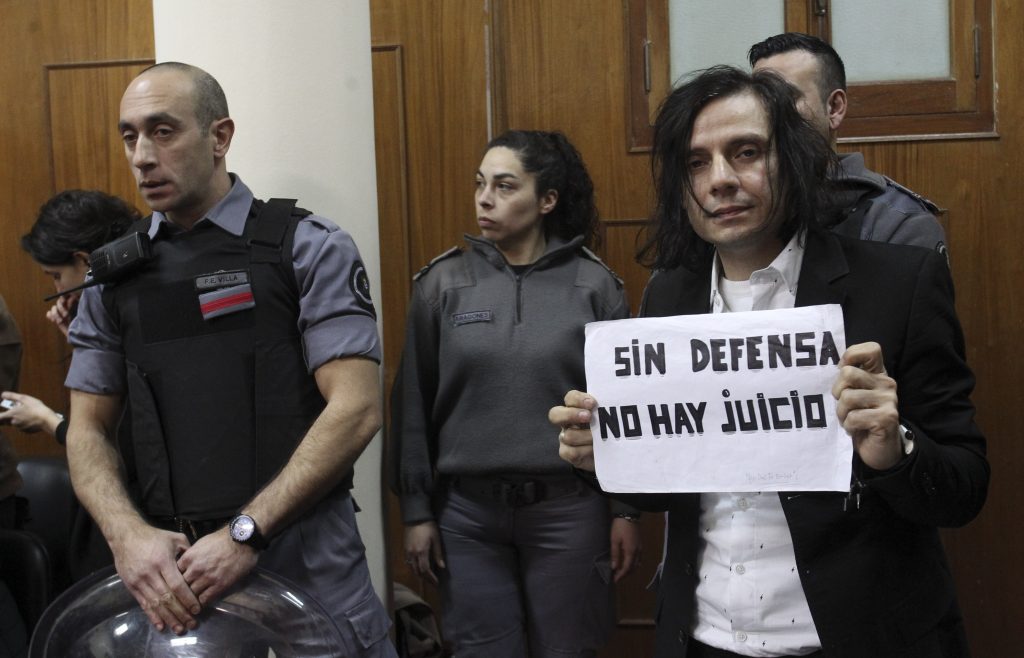 “Estoy convencido de que antes de que comenzara el juicio yo ya estaba condenado, porque soy un condenado mediático”, afirmó Aldana, quien posó para los fotógrafos con un cartel escrito a mano en el que decía “Sin defensa no hay juicio”.