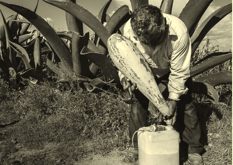 Antonio Gómez, un productor de pulque de la comunidad de Santiago Cuautlalpan, en el municipio de Tepotzotlán, al norte de la Ciudad de México, está entre quienes fabrican la bebida a la manera antigua: ahueca el corazón pulposo del maguey y utiliza una especie de sifón para extraer el líquido azucarado que se encuentra en esa sección de la planta. El líquido en esa etapa, conocido como “aguamiel”, tiene poco o ningún contenido de alcohol.