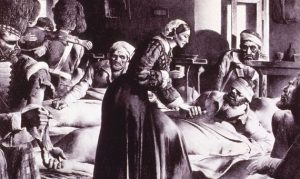 En el siguiente semestre perecieron cuatro mil ingresados, el 42% del total, en su mayoría de infecciones, tifus o disentería. Pero, en el epicentro de la enfermedad y la muerte, las enfermeras iluminaban la desolación, sobre todo, Florence Nightingale: nace la leyenda de «La dama de la lámpara»: «Cuando todos los oficiales médicos se han retirado ya y el silencio y la oscuridad descienden sobre tantos postrados dolientes, puede observársela sola, con una pequeña lámpara en su mano, efectuando sus solitarias rondas» (The Times). Sin embargo, los jefes médicos, cuya negligencia denunciaba, la llamaban «Flor del diablo».