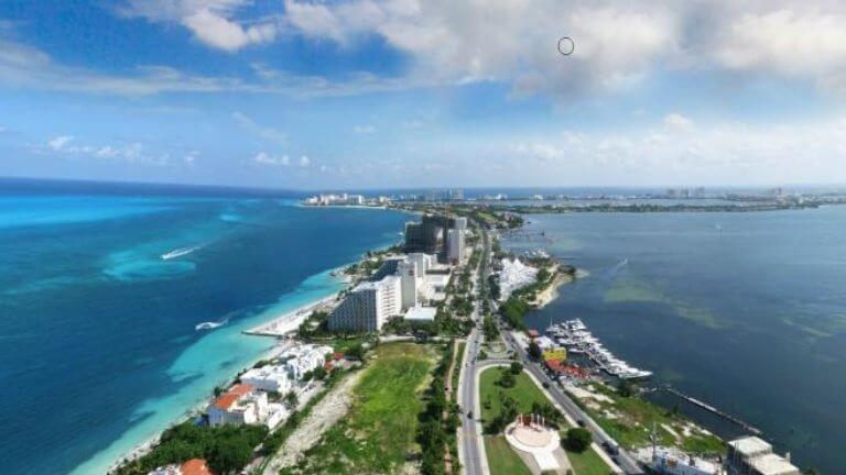 También en fotos 360 grados, vídeos 360 grados y amplias galerías de imágenes vas a poder ver desde el aire y también en detalle la ciudad de Cancún. El número siete que forma su costa destaca en especial por la arena tan blanca y pura de sus playas que los turistas ansían poder llevarse en pequeñas porciones a casa. En el mapa virtual te irán apareciendo interrogaciones en las que puedes clickar para obtener información, así como en el icono del libro que te lleva a un poco de historia del asentamiento, que ha cumplido su 50 aniversario recientemente. También se incluye la zona residencial Puerto Cancún, en la que hay exclusivas residencias para ver y resorts de lujo entre los que desplazarte.