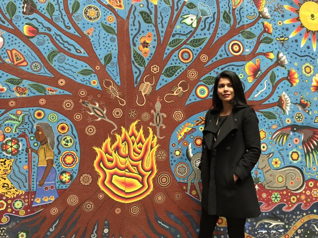 El distintivo de la artista es su gusto por la obra monumental, en octubre de 2019 inauguró el mural “Ta Kutzi Nakawe – Kiekari Muyu Kama” o “La creación del Universo”, en el Antiguo Palacio del Ayuntamiento de la Ciudad de México, que la jefa de Gobierno, Claudia Sheinbaum, calificó de “espectacular”.