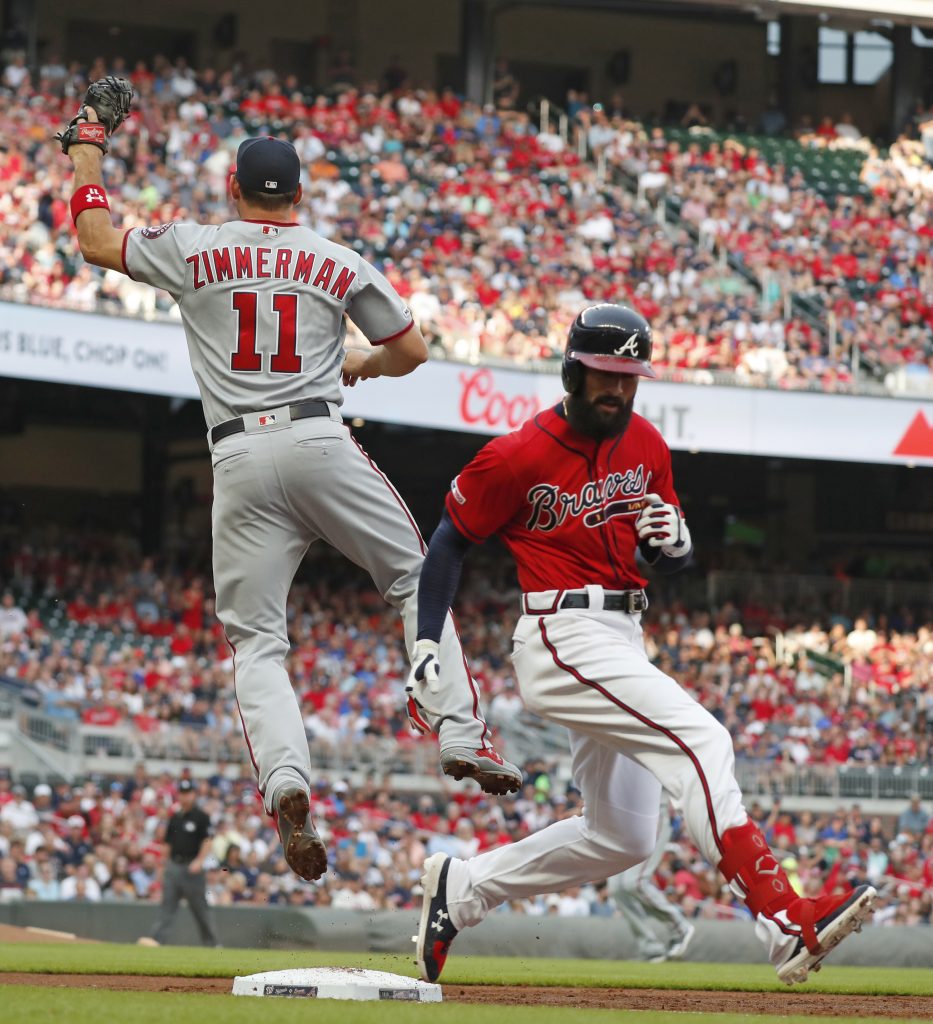 Zimmerman dejó la derrota del domingo en Atlanta tras un hit al cuadro en el segundo inning. Zimmerman se perdió 53 juegos entre el 27 de abril y el 28 de junio debido a la misma lesión. Batea para .246 con tres jonrones y 15 producidas en 33 encuentros.