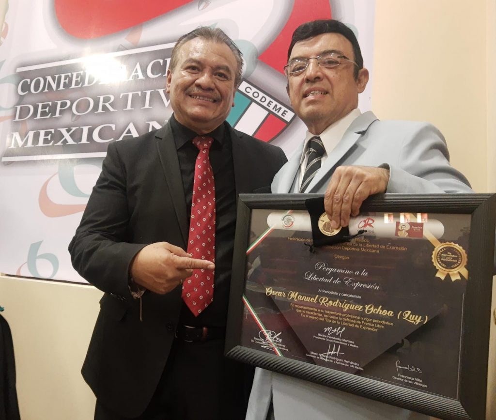 Con paso firma, de sonrisa generosa, siempre atento y disciplinado en su trabajo, el karikaturista Oscar Manuel Rodríguez Ochoa “Luy” de Revista CAMBIO, recibió el Pergamino a la Libertad de Expresión, y se refirió a la importancia de ejercer y defan cooper un respeto mutuo a quienes son observadores de sus trazos. “Evito los muros porque es como estar atado. Condeno los crímenes a periodistas, donde no se aplica la justicia y las autoridades son cómplices de estos actos”.