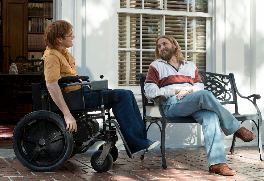 No ajeno a los personajes autodestructivos, Joaquin Phoenix entrega un trabajo extraordinario interpretando a Callahan en sus diversas etapas: el joven fiestero e irreverente, el inmóvil en recuperación gracias a una máquina que parece más bien instrumento de tortura medieval, y aquel postrado en una silla de ruedas motorizada la cual maneja a toda velocidad sin importarle caer a media acera.