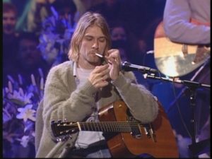 La prenda fue utilizada por Kurt, el 18 de noviembre de 1993, durante la grabación del primer álbum en vivo de la banda, el cual se tituló MTV Unplugged in New York y con el que posterior a la muerte de su vocalista se hicieron acreedores al premio Grammy por Mejor Álbum de Música Alternativa.