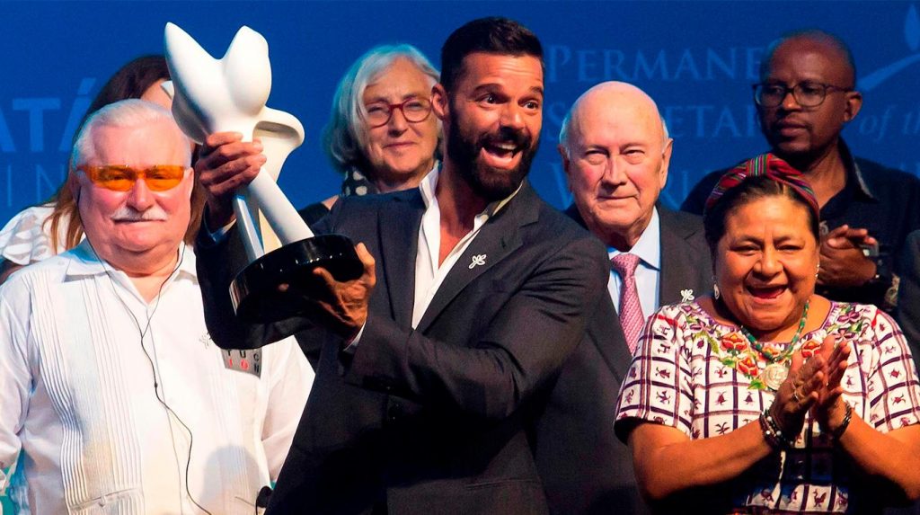 Por su labor humanitaria y sus acciones en favor de la paz, el cantante puertorriqueño Ricky Martin recibió el Peace Summit Award, en el marco de la XVII Cumbre Mundial de Laureados con el Premio Nobel de la Paz que concluyó el fin de semana en Mérida, Yucatán.