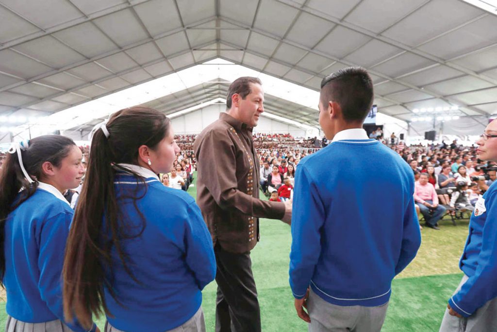Eruviel Ávila entregó laptops a estudiantes de excelencia, así como estímulos a integrantes de escoltas escolares y apoyos a bandas de marcha, en beneficio de alumnos de 15 municipios del sur de la entidad, quienes ahora cuentan con mejores herramientas para que se preparen académicamente.