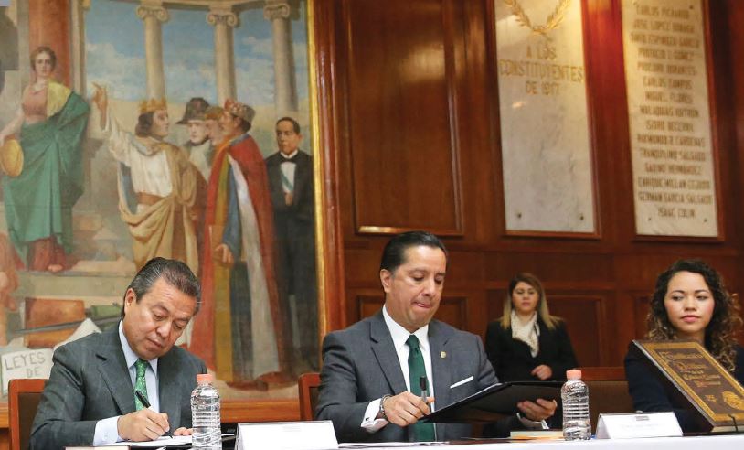 Para ello, firmaron un convenio de colaboración el rector de la UAEM, Jorge Olvera García; el coordinador del grupo parlamentario del PRI en la LXIII Legislatura federal, César Camacho Quiroz, y el presidente de la Junta de Coordinación Política de la LIX Legislatura local, Cruz Juvenal Roa Sánchez.