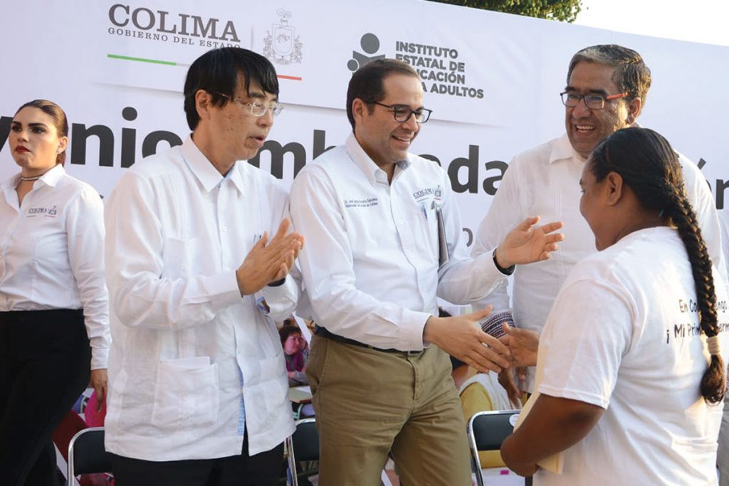 Tras la entrega de constancias de alfabetización, certificados de primaria y de secundaria a adultos que concluyeron sus estudios, el mandatario colimense se dijo seguro de que con este convenio surgirán nuevos motivos para enfrentar con éxito estas vitales tareas.
