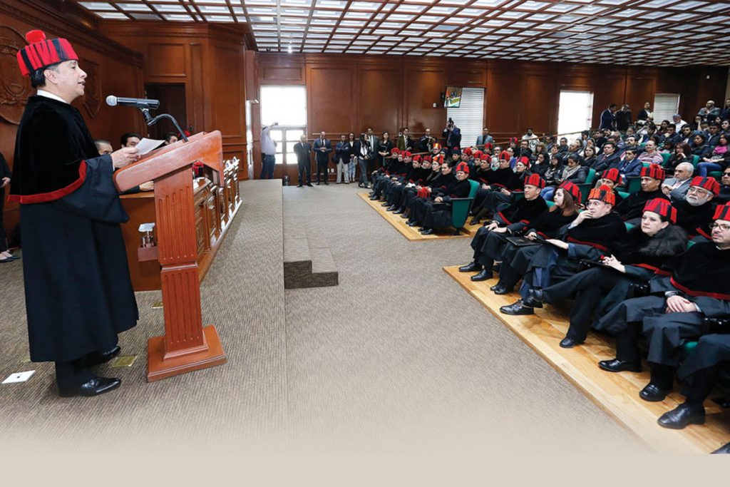 Jorge Olvera García se pronunció porque “el doctor en Derecho regrese a las aulas y que además de investigar, eduque, pula y dé forma a la masa pensante que ahí se encuentre, que no olvide su misión esencial de enseñar”.