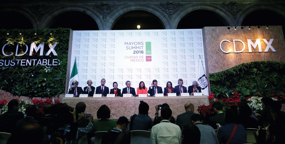 Los alcaldes de las principales ciudades del mundo han reconocido que están preocupados por los resultados de las recientes elecciones en los Estados Unidos, pues es bien sabido en el mundo que Donald Trump se ha manifestado como “incrédulo” en torno al cambio climático. A pesar de ello, los participantes de la C40 coinciden en que las ciudades tienen el compromiso y la responsabilidad de dar seguimiento a los Acuerdos de París y poner en marcha acciones concretas para garantizar la reducción de las emisiones de carbono, aun si no se cuenta del todo con el apoyo de los gobiernos federales, como sería el caso de los Estados Unidos. Miguel Ángel Mancera, jefe de Gobierno de la Ciudad de México, afirmó que, aunque el combate al cambio climático suele no ser “políticamente redituable”, sí es trascendente para el mundo. Por su parte, Michael Bloomberg, quien fuera Alcalde de Nueva York y principal impulsor de la C40, asegura que se debe esperar para saber cuáles serán las políticas que defina Trump en torno al cambio climático, pero mientras tanto, él tiene confianza en que el trabajo de los alcaldes de las ciudades, sumado al del sector privado y al de la ciudadanía, no será desdeñado pues “vale la pena”. Y es que, según Bloomberg, en el caso de Estados Unidos han sido las ciudades y no el Gobierno federal, las que han hecho el esfuerzo para reducir las emisiones de CO2 y son las urbes las que aportan el 70 % de estas emisiones en el mundo.