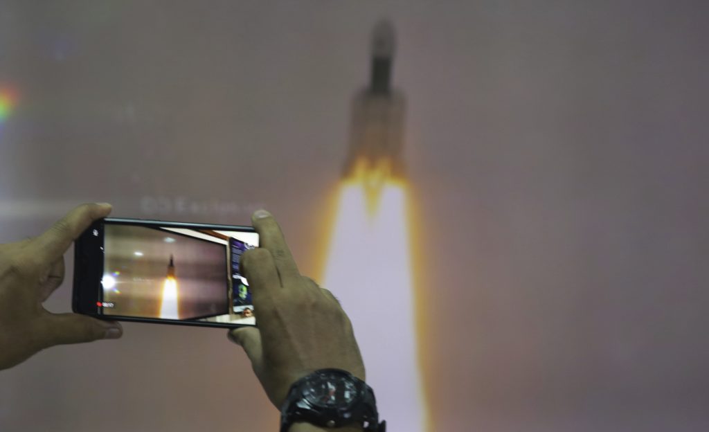 Los científicos en el centro de control de misión estallaron en aplausos cuando el cohete despegó en un día despejado como estaba previsto, a las 14:43 (0913 GMT) del lunes desde Sriharikota, en el sur de India. K. Sivan, jefe de la agencia espacial india, dijo que el cohete exitosamente introdujo a la nave espacial en órbita.