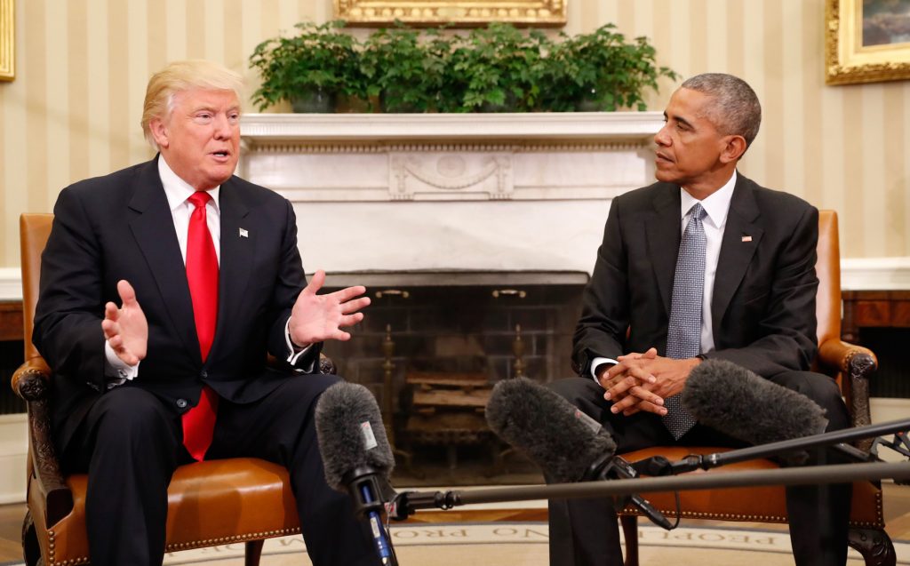Solo hizo una referencia a Trump y reprendió con amabilidad al público cuando empezó a abuchear ante la mención del próximo presidente. “No, no, no, no”, dijo Obama. El “sello característico” de la democracia del país, afirmó, es “el traspaso pacífico del poder de un presidente al siguiente”.