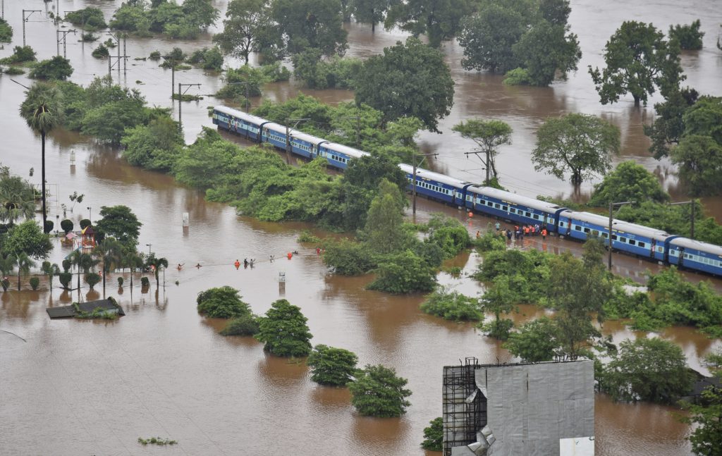 El tren Mahalaxmi Express se atascó debido a la inundación de las vías, explicó en una declaración la oficina de manejo de desastres de India en el estado de Maharashtra.