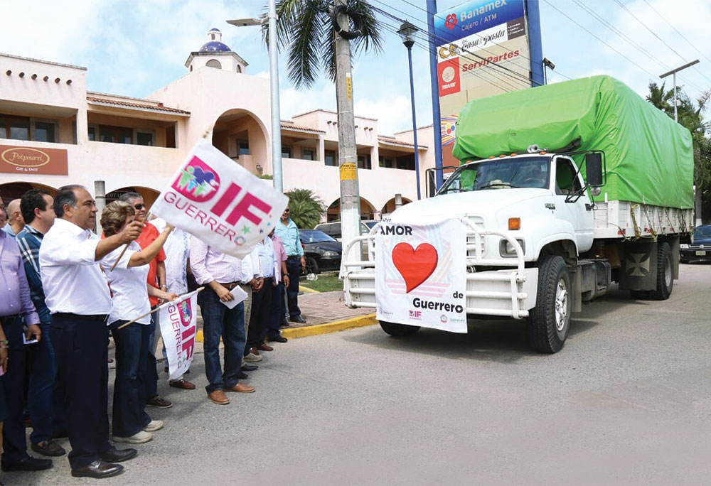 En el muelle de la Octava Región Naval, el gobernador Héctor Astudillo Flores, en compañía del vicealmirante del Cuerpo General Diplomado del Estado Mayor, Santiago Jorge Morgado Gómez, dio el banderazo de salida al barco de la Marina que traslada la ayuda, que consta de agua y víveres.