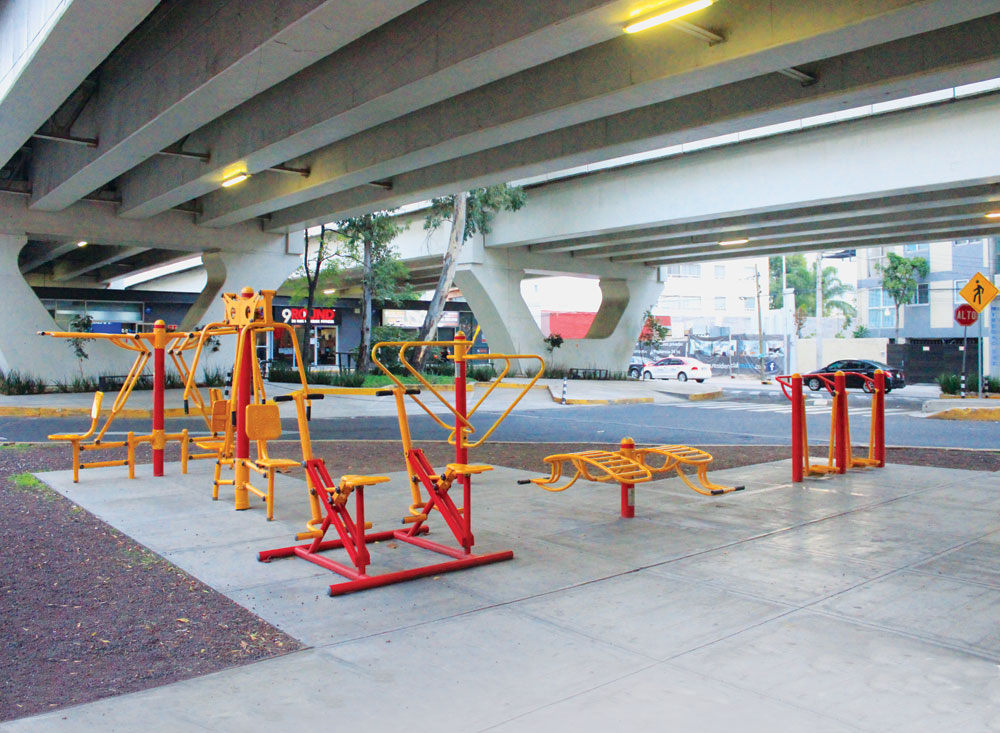 Sin embargo, a pesar de que aumentaron las opciones dónde practicar un deporte, parecía que sólo se había tomado en cuenta a un sector de la población, los jóvenes, y se había olvidado que no todo es futbol y básquetbol. Por ello, los espacios abandonados que se habían convertido en una especie de basurero o madriguera para los delincuentes, se habilitaron como lugares deportivos aptos para cualquier miembro de la familia, una especie de minigimnasios; buena parte de ellos, en los bajo puentes.