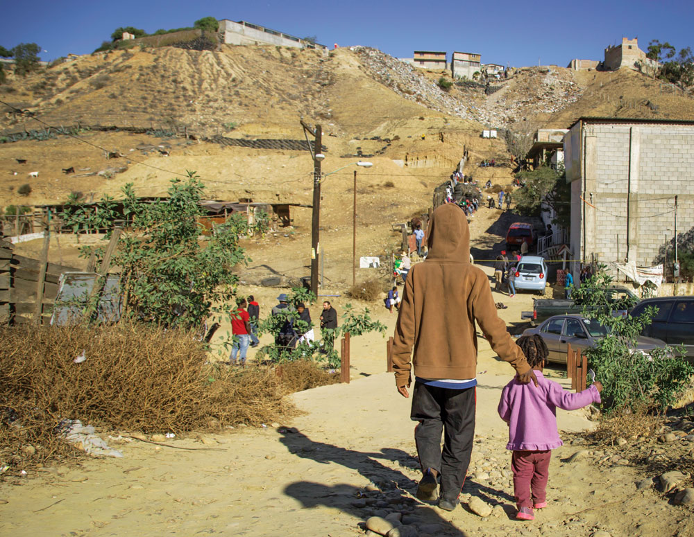 Esto también es Tijuana, aunque ahora se le conoce como La Pequeña Haití. El paisaje se compone de cerros que se pintan de un tono particular, entre el café rojizo de la tierra húmeda y el verde de la vegetación desordenada. Es una zona a medio domar por los más pobres, los sin tierra, que se han apropiado de este pedazo de país para vivir entre las llantas apiladas, los animales de granja y los perros, las casitas de adobe o de tablas con techo de lámina, los autos abandonados y las cercas de madera.