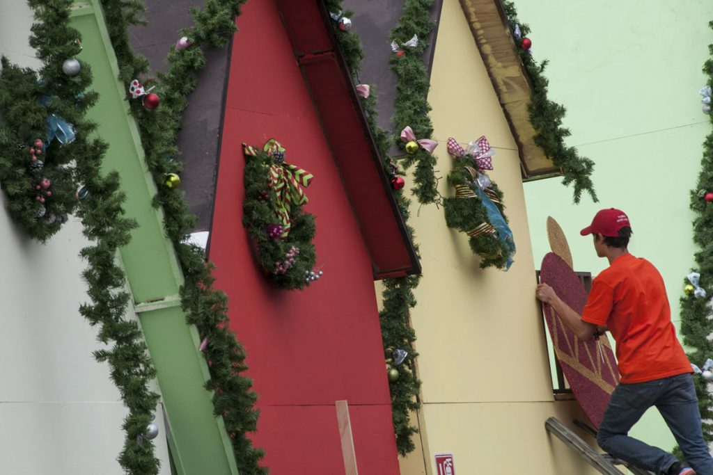 TOLUCA, ESTADO DE MÉXICO, 15DICIEMBRE2015.- A pesar de aún no estar al 100 porciento instalada algunos Mexiqueses ya disfrutan de la "Divertivilla Mexiquense" que al igual de años anteriores se contará con la pista de hielo, dos toboganes, la playa de nieve y el tradicional árbol de Navidad de 19 metros de altura. ademas de una piñata gigante esta villa esta instalada en la Plaza de los Mártires y es completamente gratuita para todos los visitantes FOTO: TONATIU CRUZ /CUARTOSCURO.COM