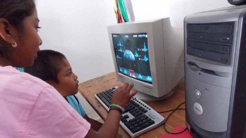 Niños y niñas de primaria y preescolar aprenden matemáticas, se familiarizan con la tecnología y desarrollan habilidades a partir de videojuegos didácticos. Lo más notable es que parte del software ya opera en mixteco, aunque se espera que en breve sea la totalidad.