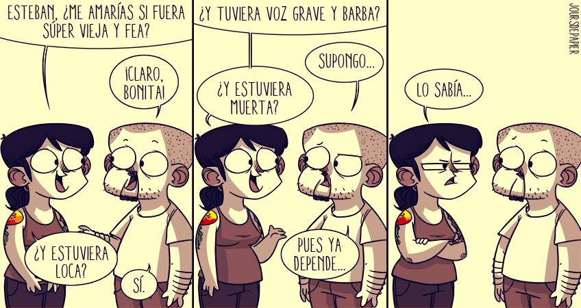 Uno de sus libros, quizá el favorito de sus seguidores, es el Manual de supervivencia de la pareja moderna. En este libro, Esteban y Tania dan algunos consejos sobre cómo sobrevivir al complicado aunque emocionante mundo de vivir en pareja. Desde la recomendación de bajar al gato de la cama durante el momento de la pasión hasta el de nunca entrar sin carrito al supermercado (aunque tu pareja te diga que sólo van por dos cosas), Jours de Papier tiene los mejores consejos en sus decenas de viñetas. Sin embargo, más allá de estos personajes, ¿qué ha mantenido juntos a Esteban y a Tania?