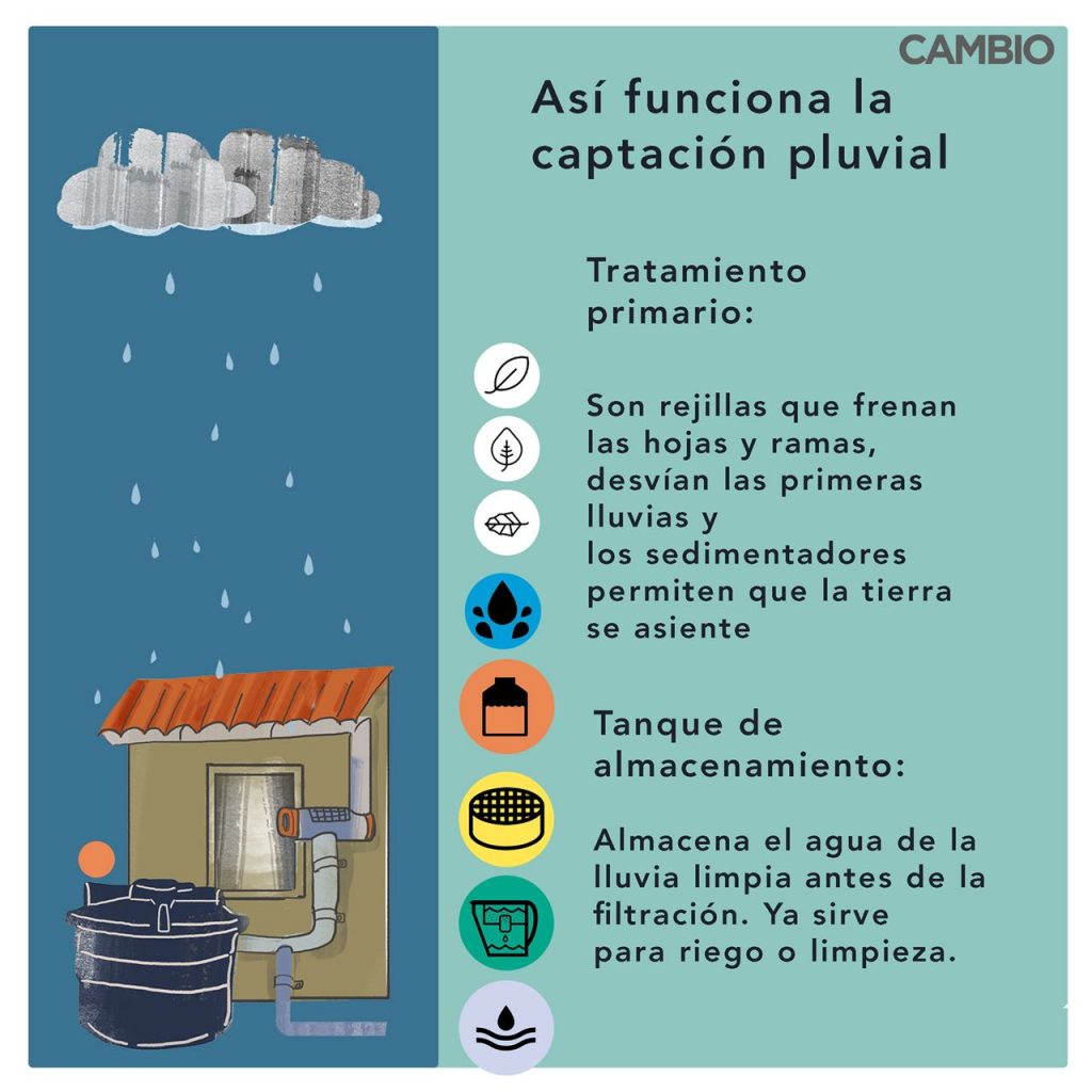 Sin embargo, el presupuesto que tenía para todo el proyecto se le fue en esas adecuaciones, así que tuvo que dejarlo en su primera etapa: una malla para separar hojas y ramas, luego un tubo para desviar las primeras lluvias, que son las que arrastran la suciedad del techo; finalmente, el tanque al que agregó unas bolsitas de cloro para desinfectar. Durante el 2017 utilizó el agua para riego del jardín, así como limpieza de coches y de la casa. Ahora está implementando la segunda etapa del sistema, que consiste en una bomba que lleva el agua del tanque hacia el techo, en donde colocó unos filtros que la limpiarán antes de descargarla al tinaco de uso general de la casa.