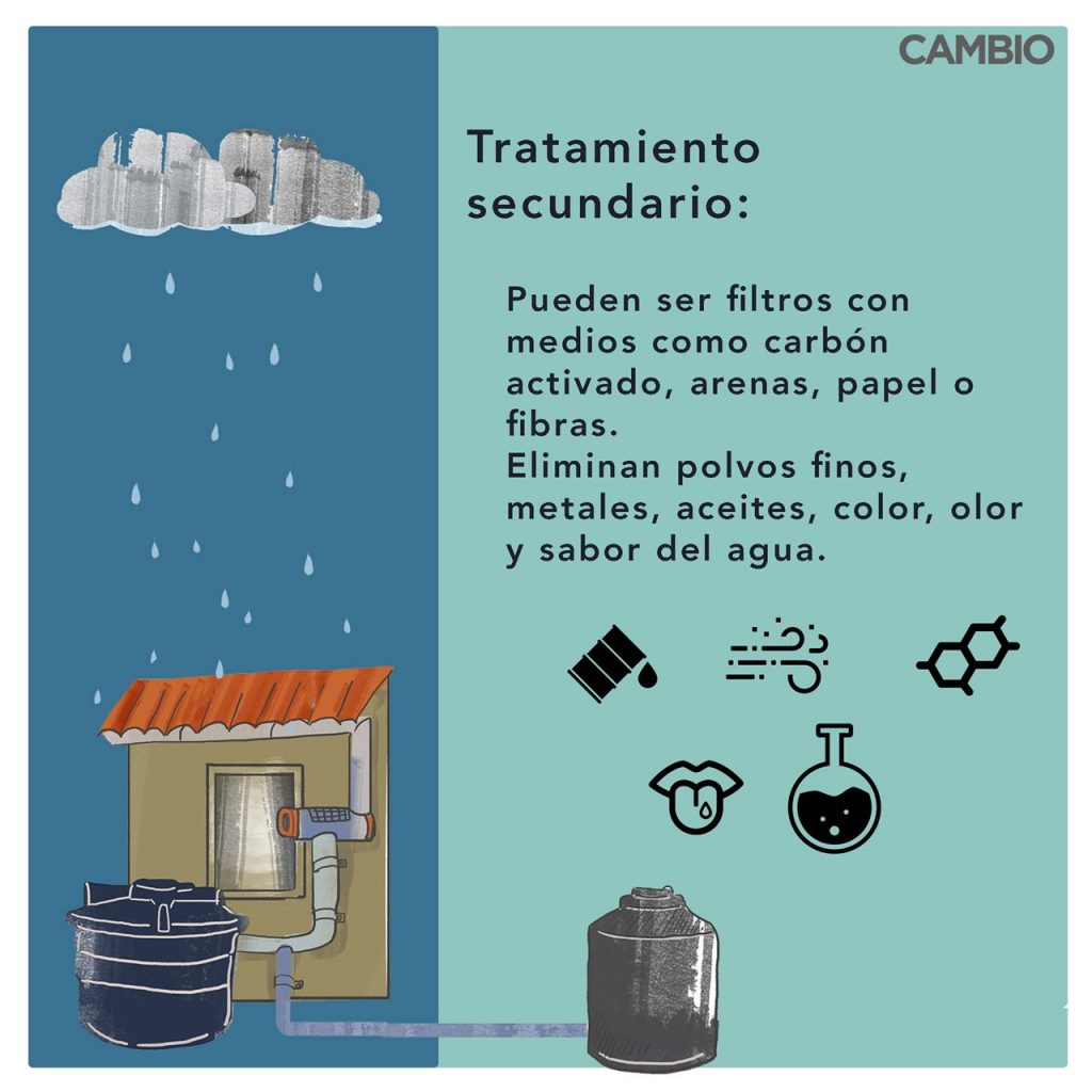 1.Tratamiento primario: se debe colocar antes del tanque. Puede consistir en rejillas para frenar hojas y ramas, desviadores de primeras lluvias o sedimentadores que permiten que la tierra se asiente en el fondo.