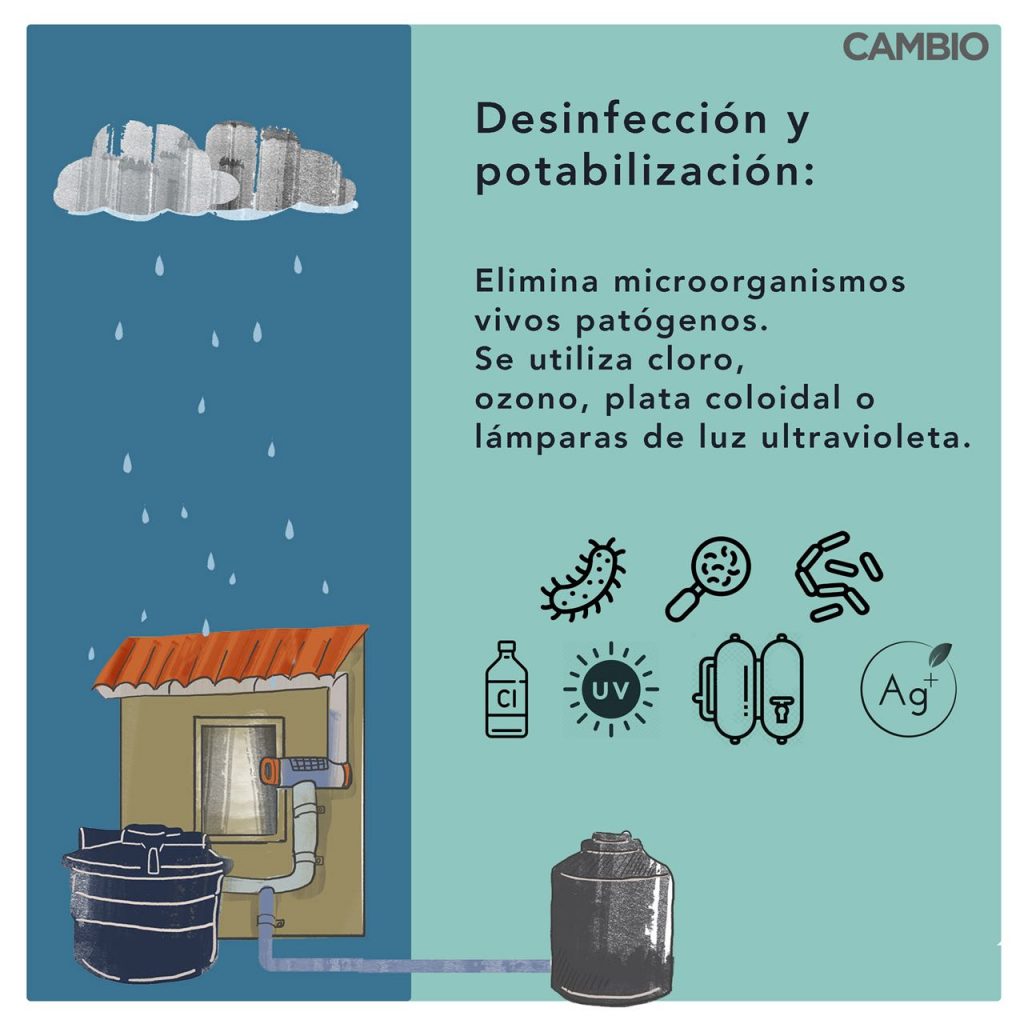 4.Desinfección y potabilización: permite eliminar microorganismos vivos patógenos que pueden causar enfermedades. Se utiliza cloro, ozono, plata coloidal o las lámparas de luz ultravioleta.