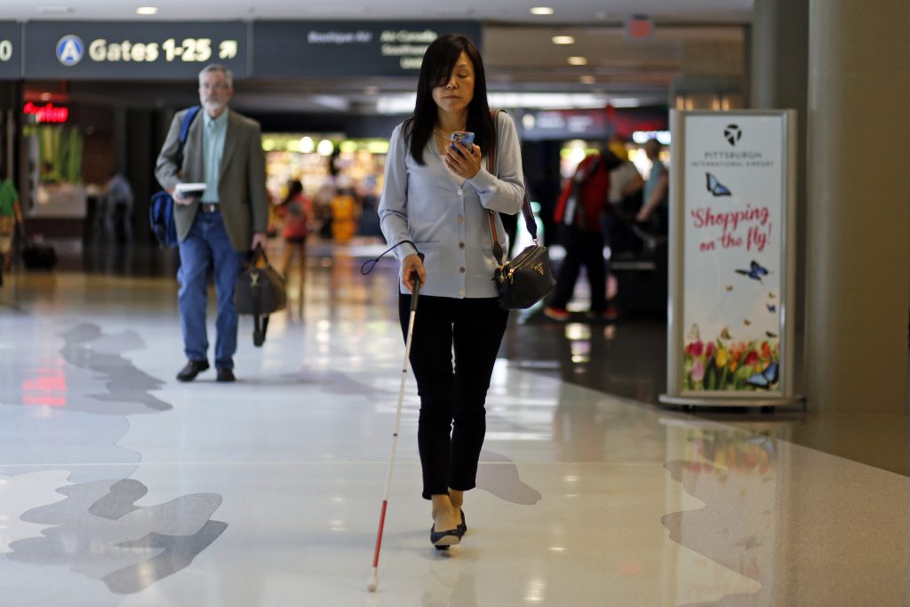 Por lo general, los viajantes con problemas visuales llegan al aeropuerto de Pittsburgh y solicitan un guía, comentó Asakawa, pero los guías no están disponibles hasta que uno documenta. Así que deben llegar al mostrador sin ayuda.