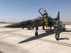 ”Este avión –F5- es el único avión de combate en México, requiere un adiestramiento especial, al igual que el resto de las aeronaves, pero pues con la práctica se va desarrollando la habilidad y la capacidad de poder pilotearlo”.