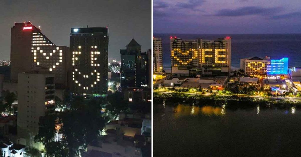 Usuarios en redes sociales viralizaron el conmovedor mensaje proyectado en hoteles ubicados en distintas partes de la república.