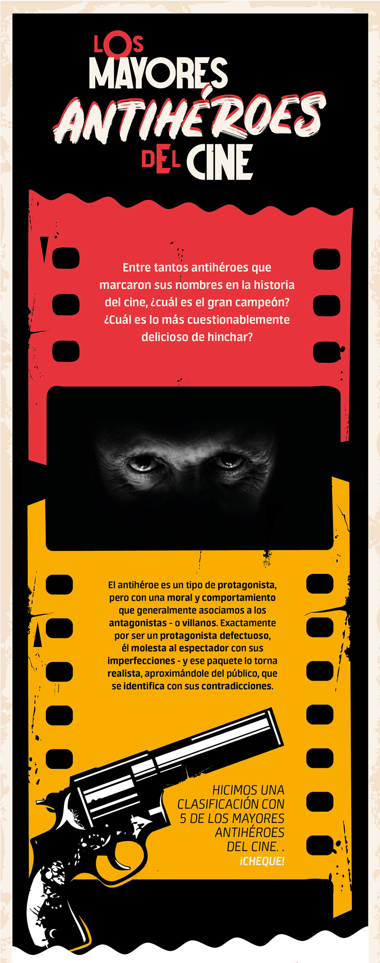 Parafraseando el refrán… Entre gustos y colores, no hay nada escrito. Eso pudiera explicar esa extraña fascinación que siente el cinéfilo por el personaje antihéroe del filme. No los odian, ni rechazan. Buscan escudriñar su mente para ver cómo justifican sus desmanes.