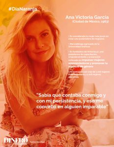 Ana Victoria García es Mercadóloga por la Universidad Anáhuac y en 2012 fundó Victoria147, una empresa dedicada a brindar herramientas a mujeres emprendedoras.