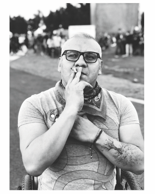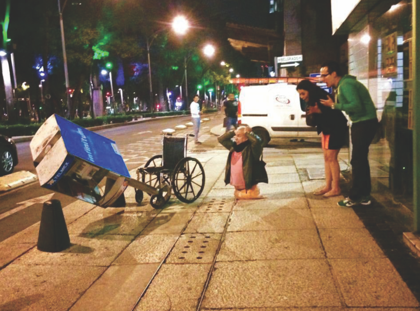Viaja en Metro, micro y Metrobús; también maneja su camioneta adaptada con un palo de escoba como acelerador y un tubo como freno. Una persona a quien le ha tocado hacer ciertas adaptaciones para acoplarse a la vida y, como todos los demás, busca los recursos que le funcionen con el fin de avanzar de una u otra manera. Por ejemplo, alguna vez bajó Grinder, una aplicación que es básicamente un menú para conocer hombres. Le tocó lidiar con preguntas como “¿pero tienes pene?”, “¿cómo coges?”, “vivo en un octavo piso, ¿cómo vas a subir las escaleras?”